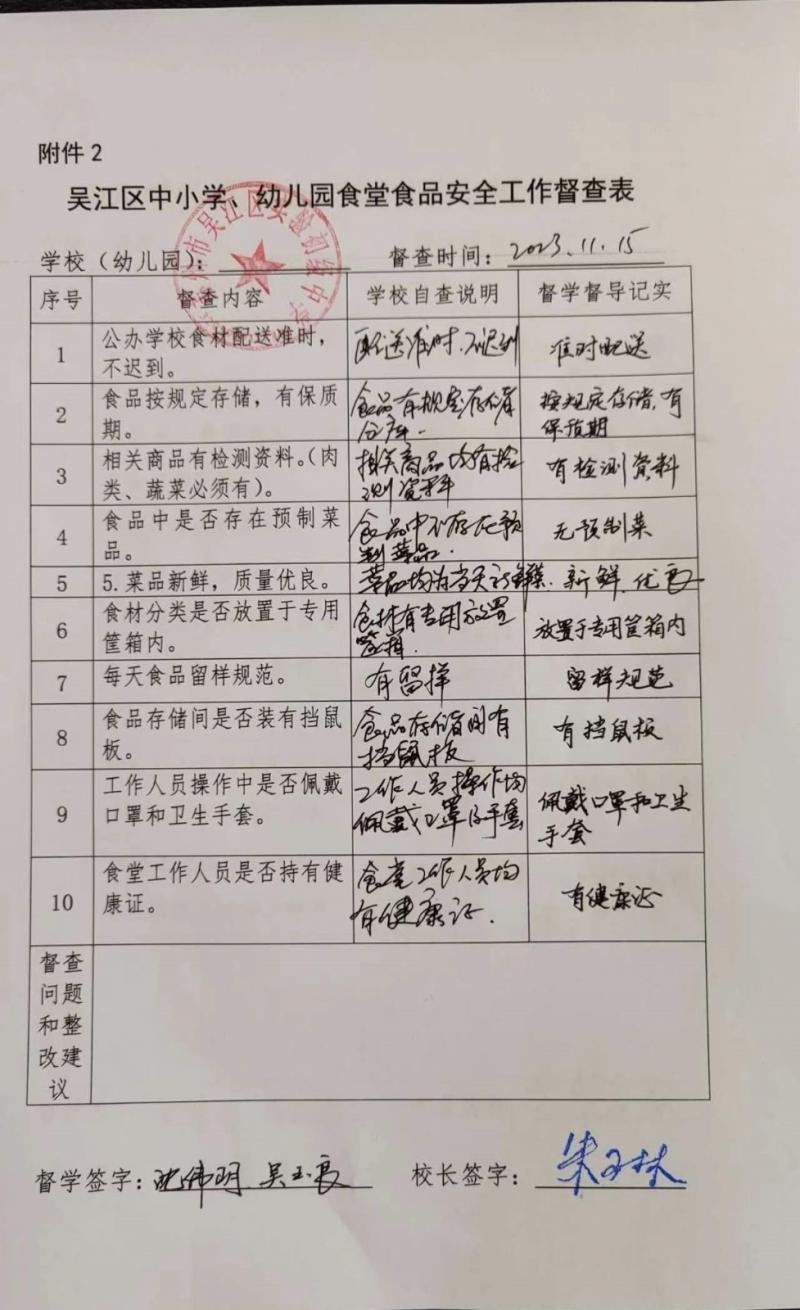 2.吴江区中小学、幼儿园食堂食品安全工作督查。